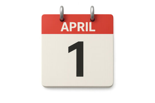 3d render of a calendar showing april 1st, april fool's day, isolated on transparent background with clipping path