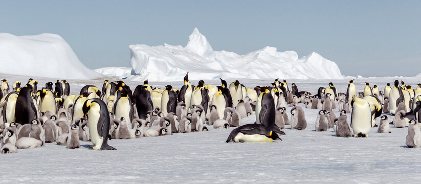 A colony of Emperor penguins (aptenodytes forsteri)on the ice of Davis sea,Eastern Antarctica