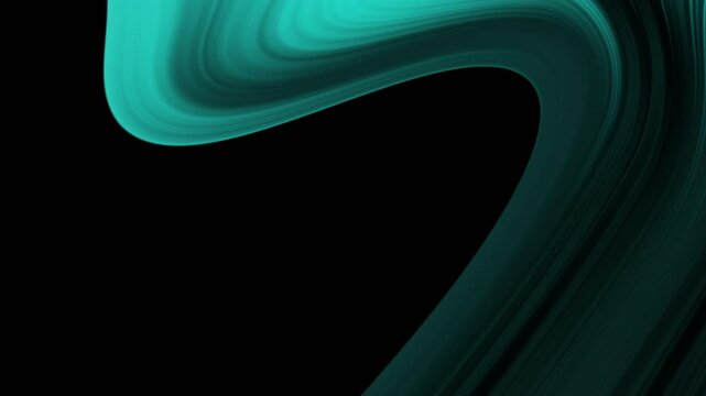 luxury aqua fractal, light streak, curve, wavy lines in cyan and teal in motion animated black background ideal for contemporary modern visual art, wallpaper, digital art, technology, calming effect