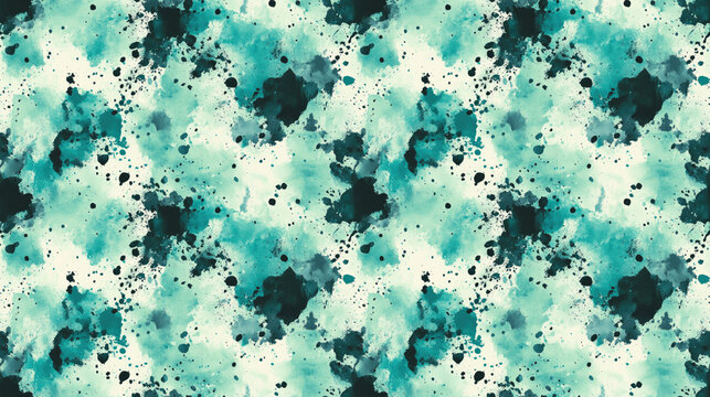 Endless watercolor splatter pattern featuring black aqua and menthe hues ideal for shibori wallpaper and abstract decor