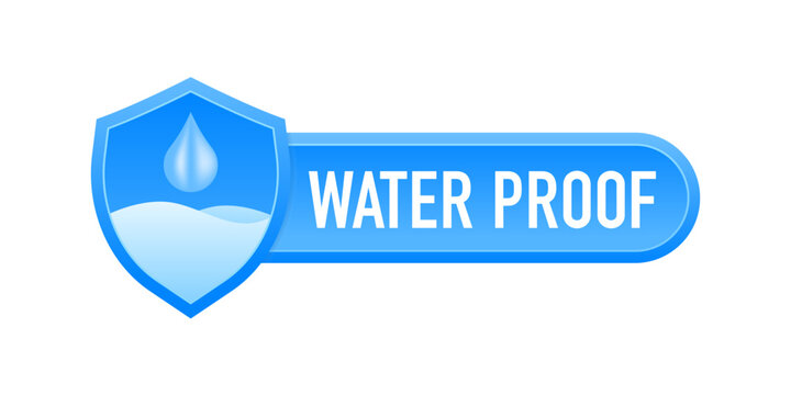 Waterproof shield logo. Water resistant symbol. Water in shield. Water protection icon with shield template. Vector illustration