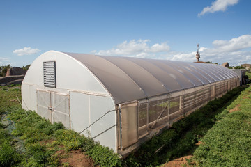 Growing plants in the greenhouse. Smart farm with wireless control. Eco farm with aquaponics system of planting vegetables. Vector illustration.