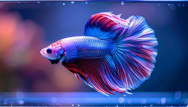 Colorful betta fish swimming gracefully in a vibrant underwater setting with shimmering light effects