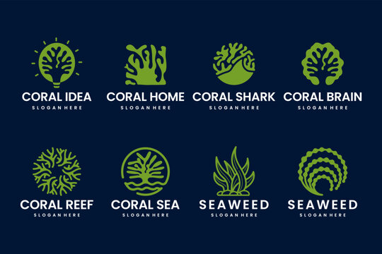 Underwater world hand drawn collection. Sketch illustration. Seaweed, coral, seashells, starfish, jellyfish, fish illustration. Vintage design template. Undersea world collection.