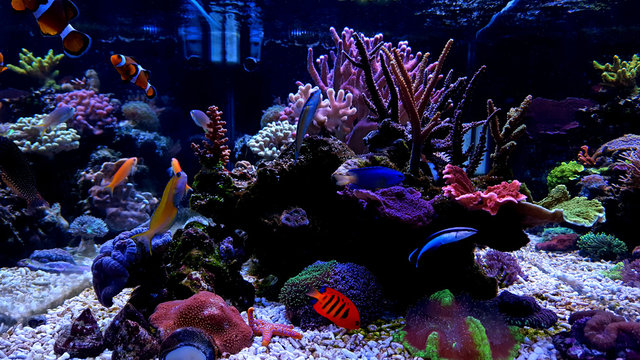 Underwater tunnel showcasing vibrant coral reef and diverse fish species, creating an immersive and awe-inspiring experience, ideal for aquarium or marine life concepts