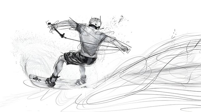 Minimalist One-Line Wakeboarder in Motion Capturing Dynamic Aquatic Sport