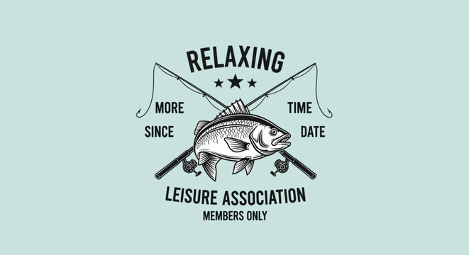 Vintage fishing emblem with a fish and crossed rods for a relaxing leisure association, featuring text 'Relaxing Leisure Association Members Only'.