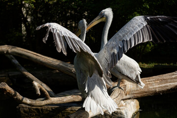 cormorant breathes heavily during the heat against a blurred background, slow motion