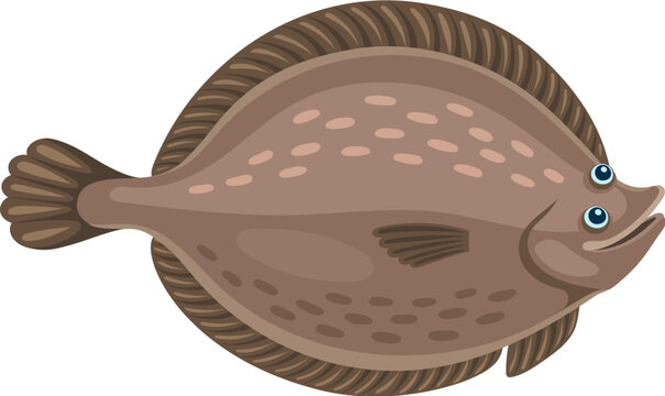 Flatfish ocean underwater marine animal cartoon character. Ocean water flatfish cute mascot, sea aquatic wildlife cheerful isolated vector personage. Underwater creature happy mascot or character
