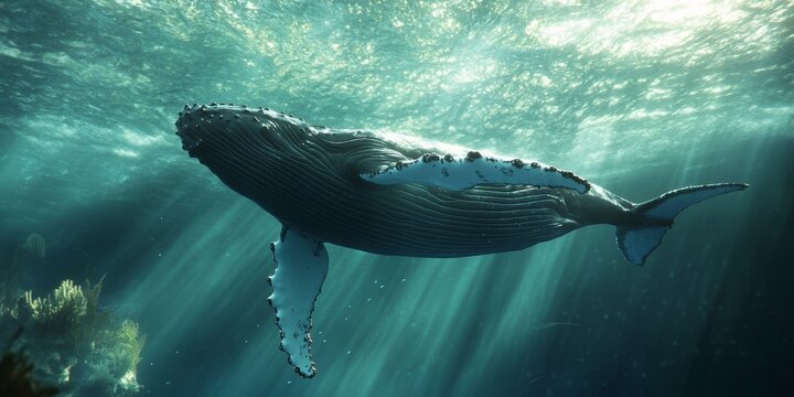 Mysterious underwater creature swimming in a blue aquatic environment. AI-generated.