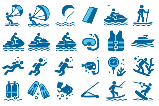 Diverse collection of blue wave and splash icons suitable for aquatic themes and designs
