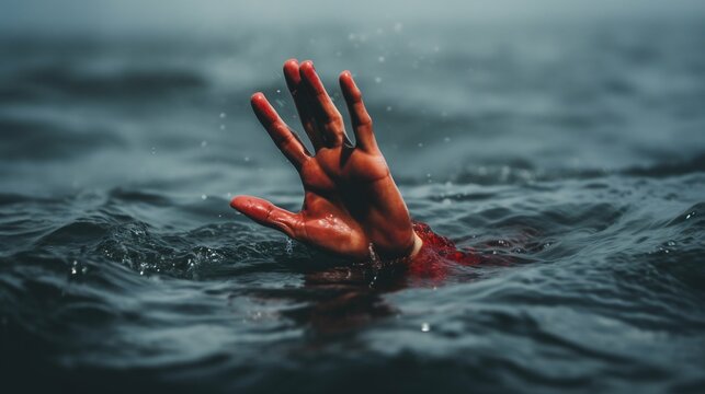Struggle for Survival: Hand Emerging from Water. Generative ai
