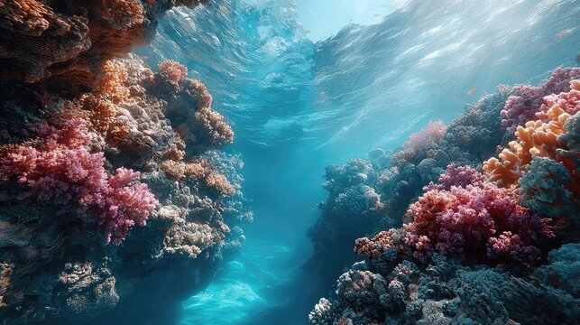 Underwater Coral World teeming with colorful marine life and vibrant reef texture perfect for ocean awareness visuals tropical themes and aquatic patterns