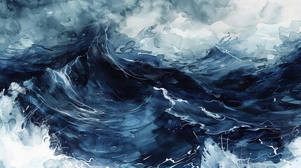 Tempest Tides Abstract Watercolor of Stormy Sea