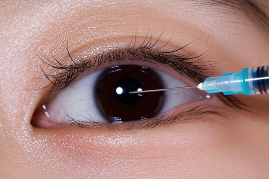Microscopic image of aqueous humor in an eye with glaucoma. Focus on the aqueous humor-filled anterior chamber.
