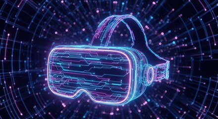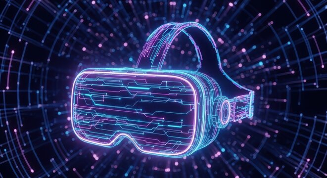 Immersive Digital World: VR Headset Experience Highlighted by Modern Neon Lighting and Technology