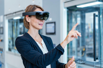 Concept of augmented reality technology being used in futuristic smart tech glasses