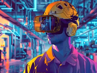 Illustration of Using AR and VR for training, maintenance, and design visualization in industrial environments. Ai Generate.