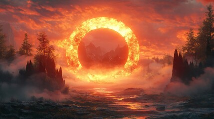 Mystical Portal to Surreal Fantasy World with Circular Gateway and Dreamlike Atmosphere in Vibrant Digital Illustration - AR 16:9, Art Nouveau Inspired