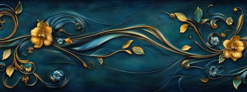 Art Nouveau fabric pattern with flowing organic lines and floral motifs