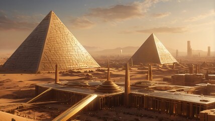 Time-Warped Egypt Featuring Art Nouveau Skyscrapers and Futuristic Desert Glow**  16:9 ar Time Warp digital art