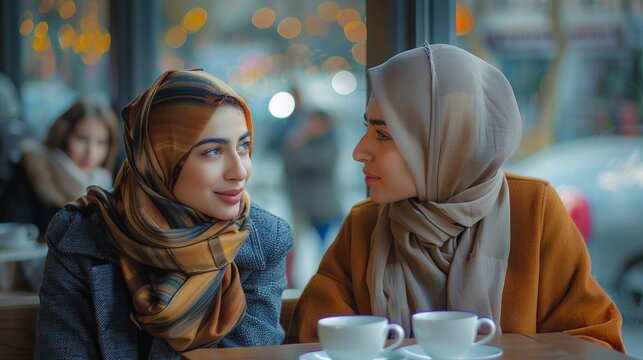 Arab Women Laughing and Chatting in a Cozy Kitchen.