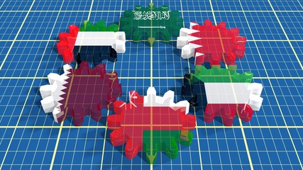Flag of the League of Arab States. Realistic waving flag of Arab League. 3d shaded green flag texture.
