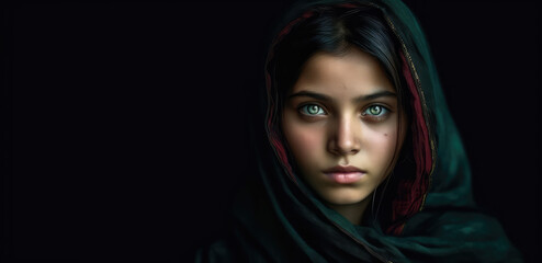 Muslim woman in hijab is riding a horse AI generated image