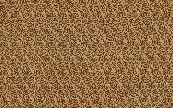 Used antique floral tapestry or wallpaper with gothic or renaissance border on natural fiber paper
