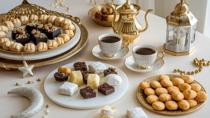 Traditional arabic coffee with dates . Ramadan decor with Arabian coffee set. ai generative