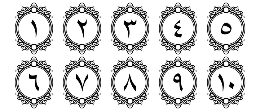 Arabic numerals with ornaments for book pages of your choice of elegant design. Vector file isolated on a transparent background
