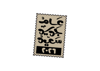 Translation Happy New Year in Arabic calligraphy handwritten, modern font New Year's 2026 greeting card design