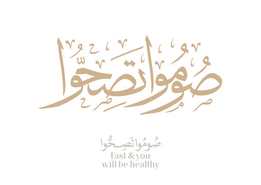 Arabic calligraphy design for the quote said by the Prophet, translated: Fast and you will be healthy. Islamic art for ramadan kareem. صوموا تصحوا