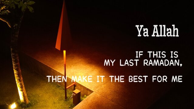 Islamic pray or dua at Ramadan, the holy month - Ya Allah if this is my last ramadan, then make it the best for me. Aesthetic outdoor lamp at night background.