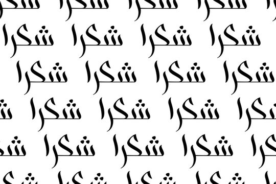 Brush calligraphy Shukran in Arabic seamless pattern on white background for wrapping paper print. Shukran means Thank you in arabic language. Vector illustration