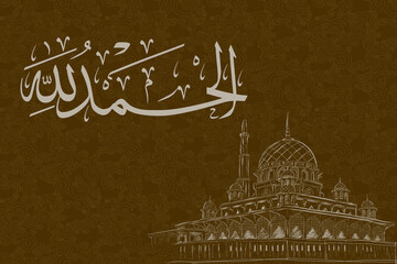 Arabic calligraphy artwork of Alhamdulillah. Translations: Thank God. Khat thuluth style. Abstract and artistic background. Brown and silver mandala.