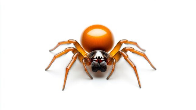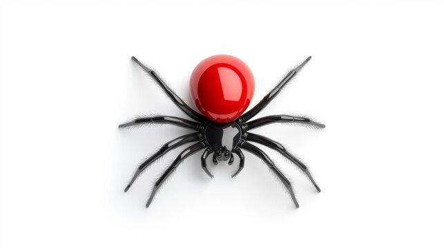 A giant spider is crawling on the ground. It has a shiny black body and long, hairy legs. The spider is looking at the camera with its eight red eyes.