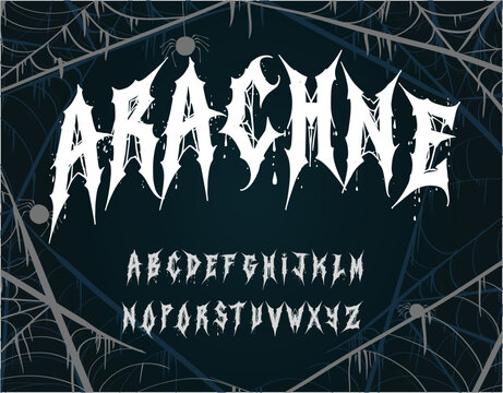arachne font scary metal black font typeface, spider web effect alphabet, metal font, rock font, horror font