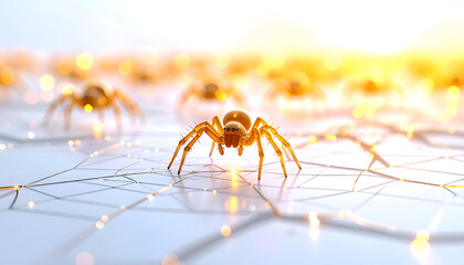 A collection of colorful spiders on a white background. Various spider species in bright colors, perfect for educational materials or entomology topics. Concepts of hunting, stealth, and attack.