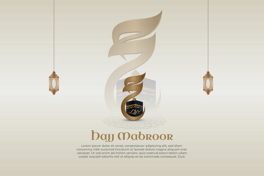 Hajj Mabroor Islamic Template Vintage paper style. With Kaaba, Calligraphy and Lantern 3d Realistic for Background, Social Media Post, Flyer, Baner or Poster.