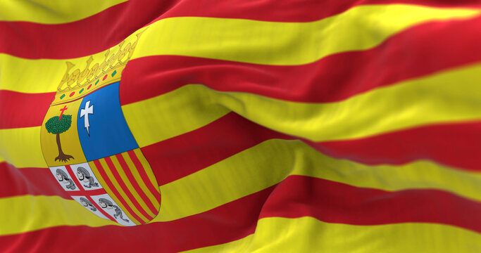 Detail of the Aragonese flag waving in the wind