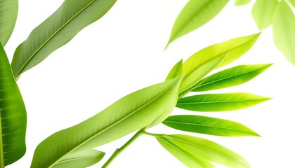 Vibrant green tropical aralia leaves isolated on pure white background, fresh, photography