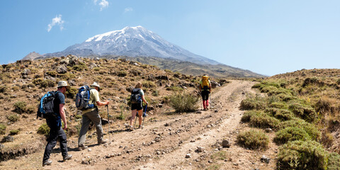 Breathtaking view of Mount Ararat, Agri Dagi, the highest mountain in the extreme east of Turkey accepted in Christianity as the resting place of Noah's Ark, a snow-capped and dormant compound volcano