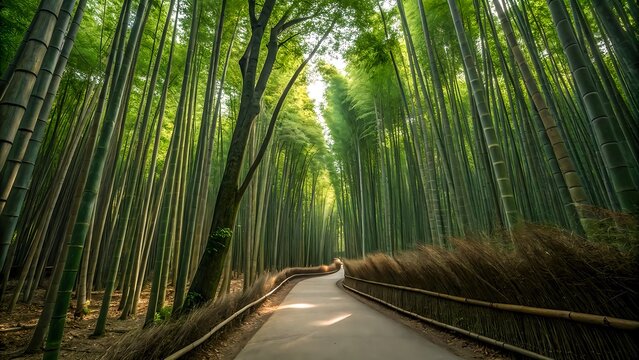 Imagine kyoto japan arashiyama bamboo grove serene pathways towering bamboo stalks