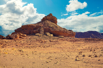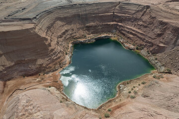 Deep green hidden lake in Timna surrounded by mountains near Eilat, Arava zone in Israel.