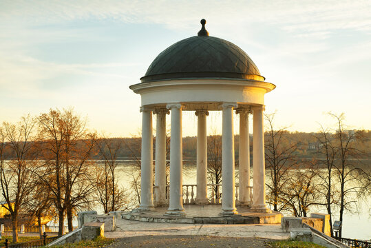 Ostrovsky gazebo in Kostroma. Arbor on the Volga embankment. Russian Federation.