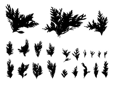 Cypress Twigs Icon, Cupressus Leaf Symbol, Arborvitae Twig, Thuya Sprig Silhouette, Thuja Leaves