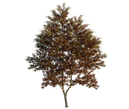 Oxydendrum arboreum tree, front view, cutout, transparent background, isolate, Magnificent tree with autumnal leaves creating a serene natural ambiance