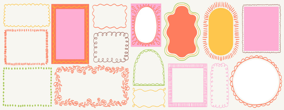 Boho Frame and Arch Set in Trendy Minimal Liner Style. Vector Bohemian Borders for Creating Logo