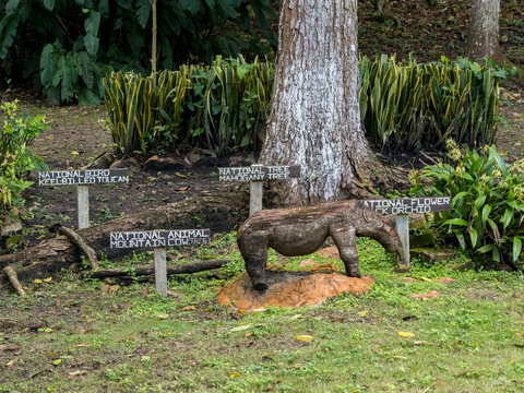 Welcome sign at the Mesoamerican archaeological site of Lamanai (Submerged Crocodile), Belize